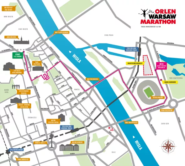 Trasa charytatywnego marszobiegu będzie mieć długość 4,6 km i poprowadzi uczestników od Placu Zamkowego na błonia Stadionu Narodowego, czyli tam, gdzie następnego dnia będzie finiszował Orlen Warsaw Marathon oraz towarzyszący mu bieg na 10 km. Ramię w ramię pobiegną i pomaszerują tu osoby zdrowe i niepełnosprawne, nie będzie prowadzona klasyfikacja i pomiar czasu.