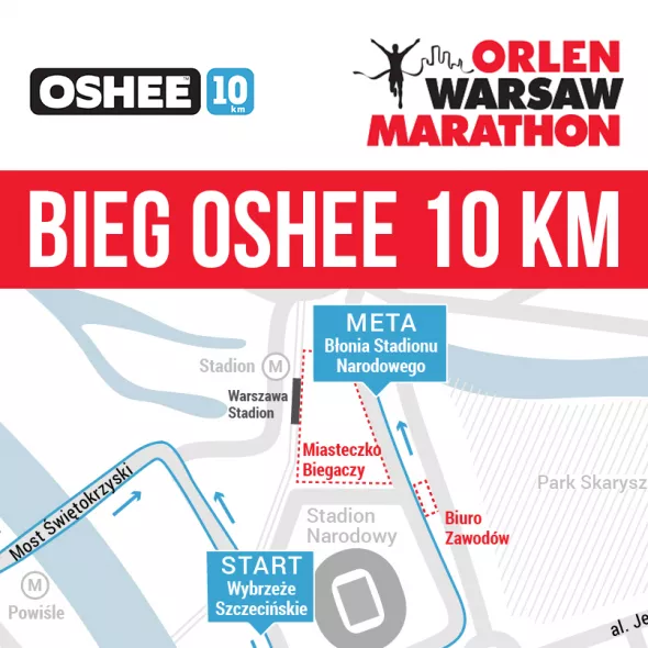 OSHE 10 km - taką nazwę otrzymał bieg towarzyszący głównym zmaganiom 3. ORLEN Warsaw Marathon. Podobnie jak w ubiegłych latach obie konkurencje wystartują niemal jednocześnie z tej samej strefy startowej, zlokalizowanej przy Stadionie Narodowym.