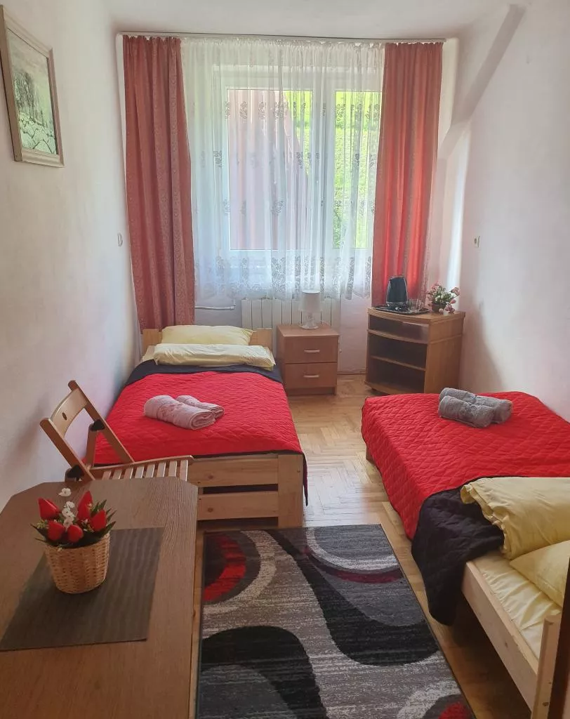 Oferujemy zakwaterowanie w pokojach 1,2,3,4 osobowych z łazienką w budynku głównym ( niektóre posiadają balkony)i 4 pokoje 4 osobowe w budynku obok z wyjściem na taras.