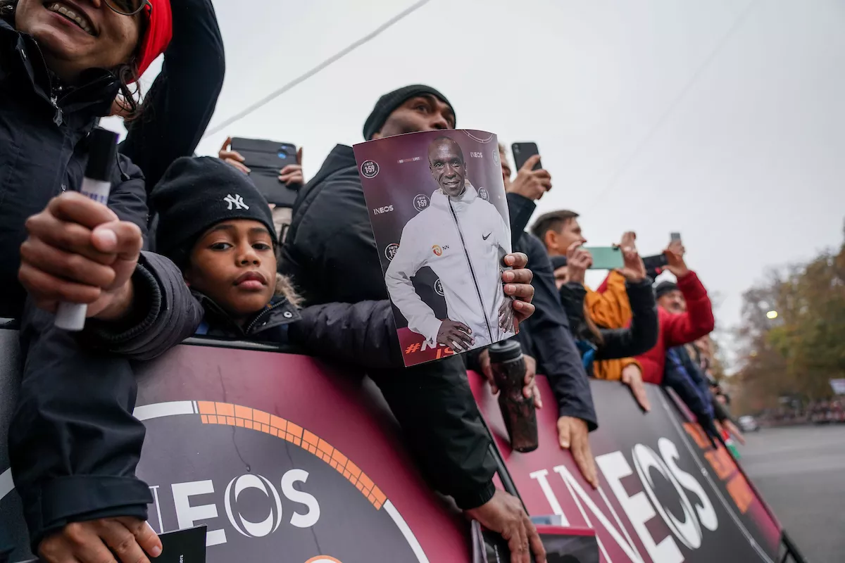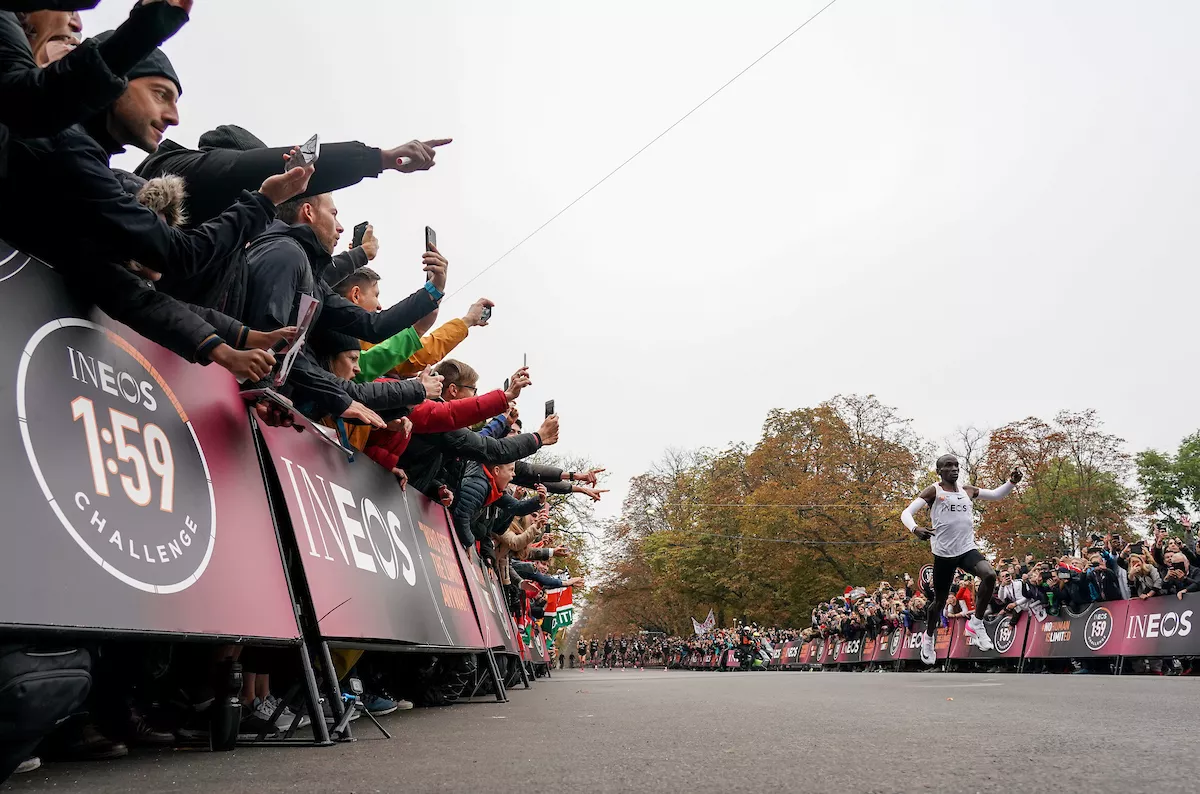 Metę Eliud Kipchoge przekroczył przy szalonym aplauzie kibiców, w niebotycznym czasie 1:59:40!