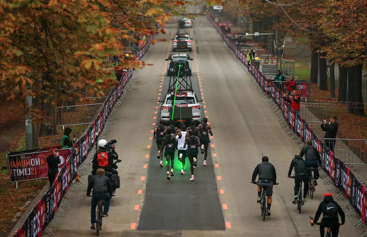 Przed biegaczami jechał samochód (wraz z samochodem rezerwowym) wyposażony w elektroniczną tablicę wskazującą przebyty dystans, upływający czas oraz tempo w jakim biegnie grupa. Na aucie zamontowane były także lasery precyzyjnie wyznaczające strefy, w których powinni poruszać się pacemakerzy i kreślące linię oznaczającą wynik poniżej 2 godzin (jak informowali organizatorzy, tempo ustalono na wynik na ok. 1:59:40 - 1:59:50). To, co zaskoczyło pacemakerów – jak wskazał Henrik Ingebrigtsen, to zanikający ślad lasera na mniejszym z rond. Wyrównanie tempa następowało dopiero na prostej.