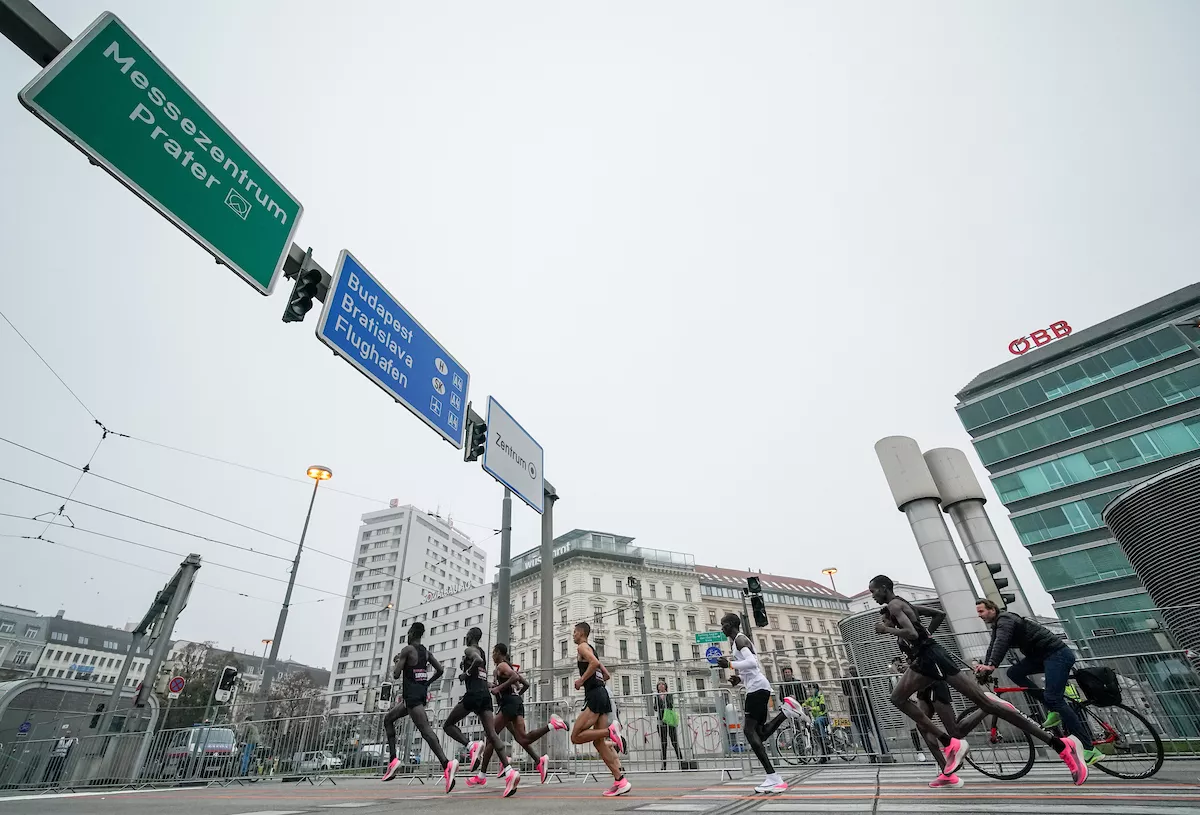 Eliud Kipchoge oraz najprawdopodobniej jego pacemakerzy wystartowali w Wiedniu w nowym rodzaju obuwia. Nieznane są szczegóły techniczne tego modelu, wiadomo tylko, że miał nowatorską konstrukcję: