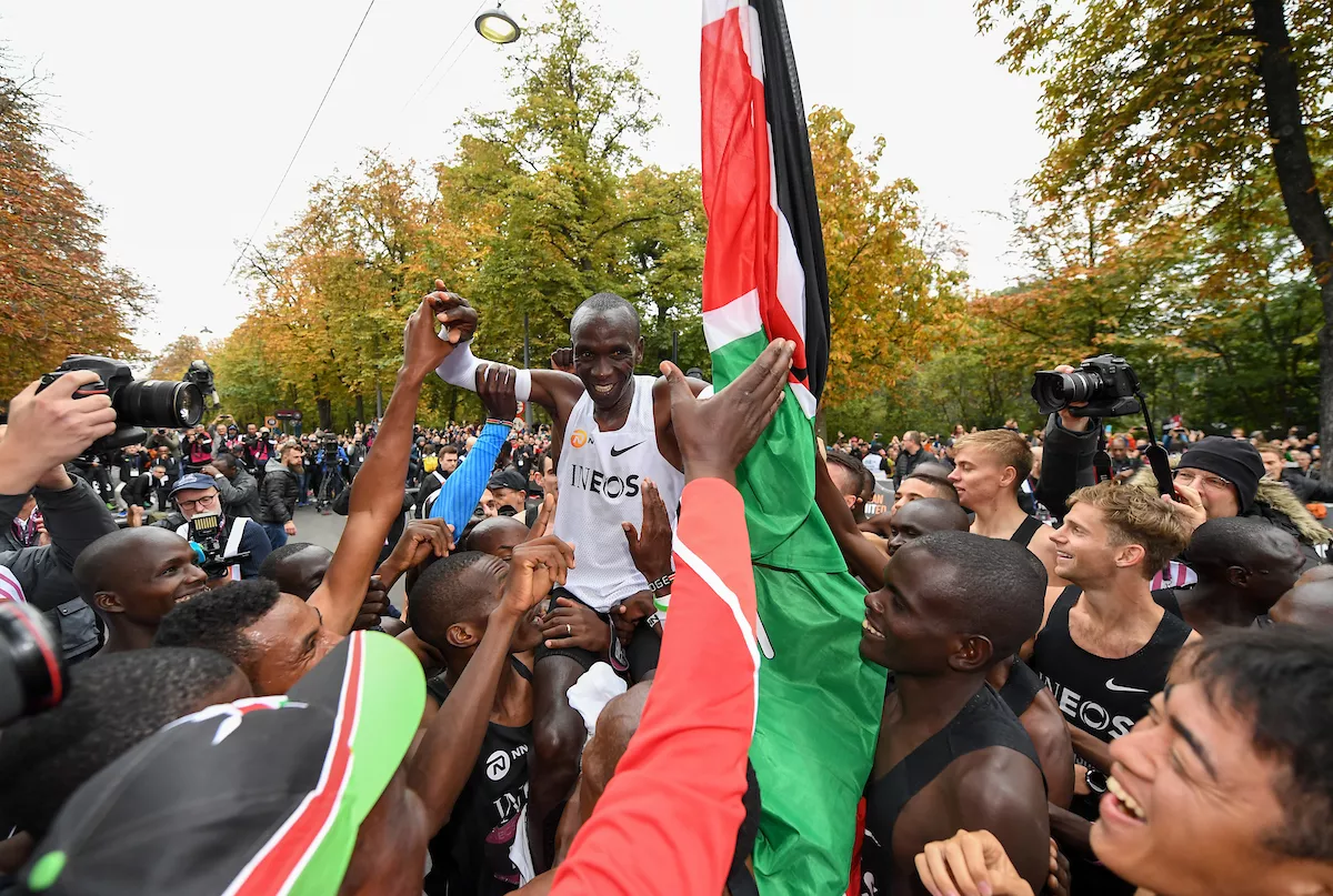Roger Bannister łamiący 4 minuty w biegu na milę, Neil Armstrong stawiający pierwszy krok na księżycu, Edmund Hilarry wdrapujący się na szczyt Mount Everestu, Alan Eustace skaczący ze spadochronem z granicy atmosfery… Eliud Kipchoge biegnący maraton poniżej 2 godzin! Kenijczyk dokonał w Wiedniu niewyobrażalnego – pokonał 42,195 km w czasie 1:59:40!