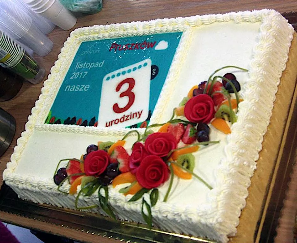 Po biegu była herbata i tort na trzecią rocznicę parkrun Pruszków.