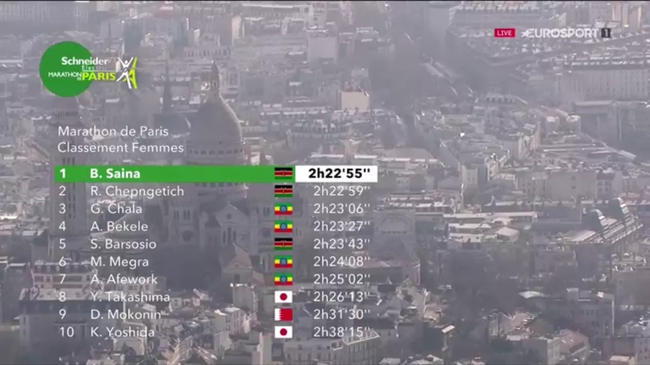 Kenijczyk, obrońca tytułu przypuścił frontalny atak na liderkę Betsy Sainę. Ta jeszcze zerwała się do długiego finiszu, ale nie dała odeprzeć ataku rodaka. Lonyangata wyprzedził Sainę dopiero kilkadziesiąt metrów przed metą.
