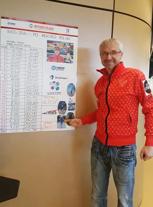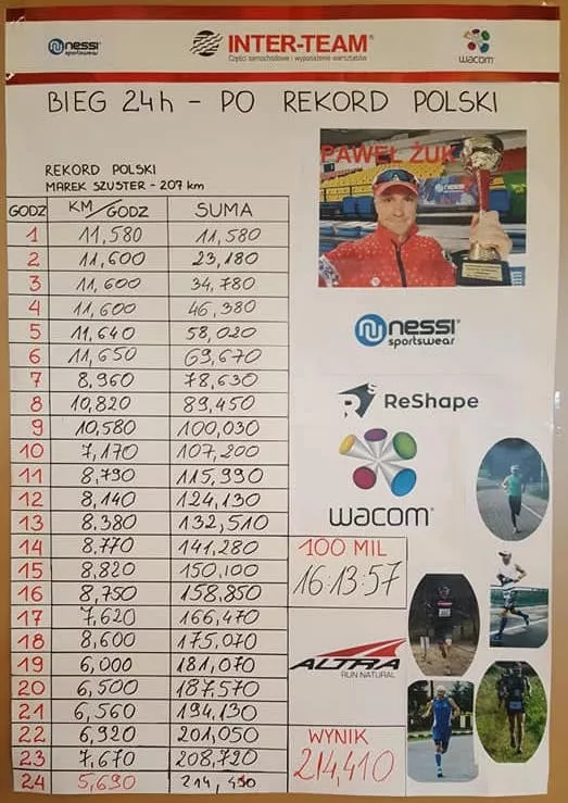Dziś w pięknym stylu warszawianin rozprawił się z rekordem kraju na dystansie dwa razy dłuższym! Podczas dobowej próby w klubie Reshape w Zabrzu nabiegał 214,41 km!