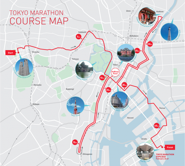 W najbliższą niedzielę biegacze wystartują o godz. 9:05 czasu lokalnego (w Polsce będzie wtedy godzina 1:05 w nocy) sprzed siedziby urzędu miasta. Po drodze będą mijać Pałac Cesarski, malowniczy Park Hibiya, dzielnice Shinagawa, Ginza, Nihonbashi, Asakusa i Tsukiji. Meta mieści się będzie nieopodal Tokyo Big Sight – dużego centrum kongresowego, gdzie zorganizowane zostaną maratońskie targi EXPO.
