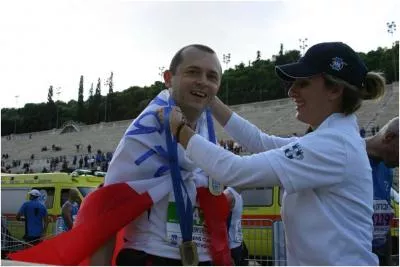 Bardzo chciałem uniknąć powtórki z Warszawy, gdzie część dystansu przespacerowałem. Wiedziałem, że ważniejsze w tej chwili jest ukończenie biegu niż walka o wynik. Ostatnie 10 km dało mi kolejną lekcję - prawdziwy maraton zaczyna się dopiero po 30-tym kilometrze. Do mety dotarłem niesiony falą wspaniałego dopingu zgromadzonych wzdłuż trasy i na stadionie Ateńczyków. Mimo piekielnego zmęczenia udało mi się rozwinąć i unieść polską flagę przypominającą kibicującym rodakom o ubiegającej właśnie 94 rocznicy. Radość z finiszu była wprost proporcjonalna do bólu nóg, które poczuły, że był to ich trzeci maraton w ciągu ostatnich 2 miesięcy. Na mecie na każdego uczestnika czekał medal i torba owoców, m.in. przesłodkie greckie pomarańcze.
