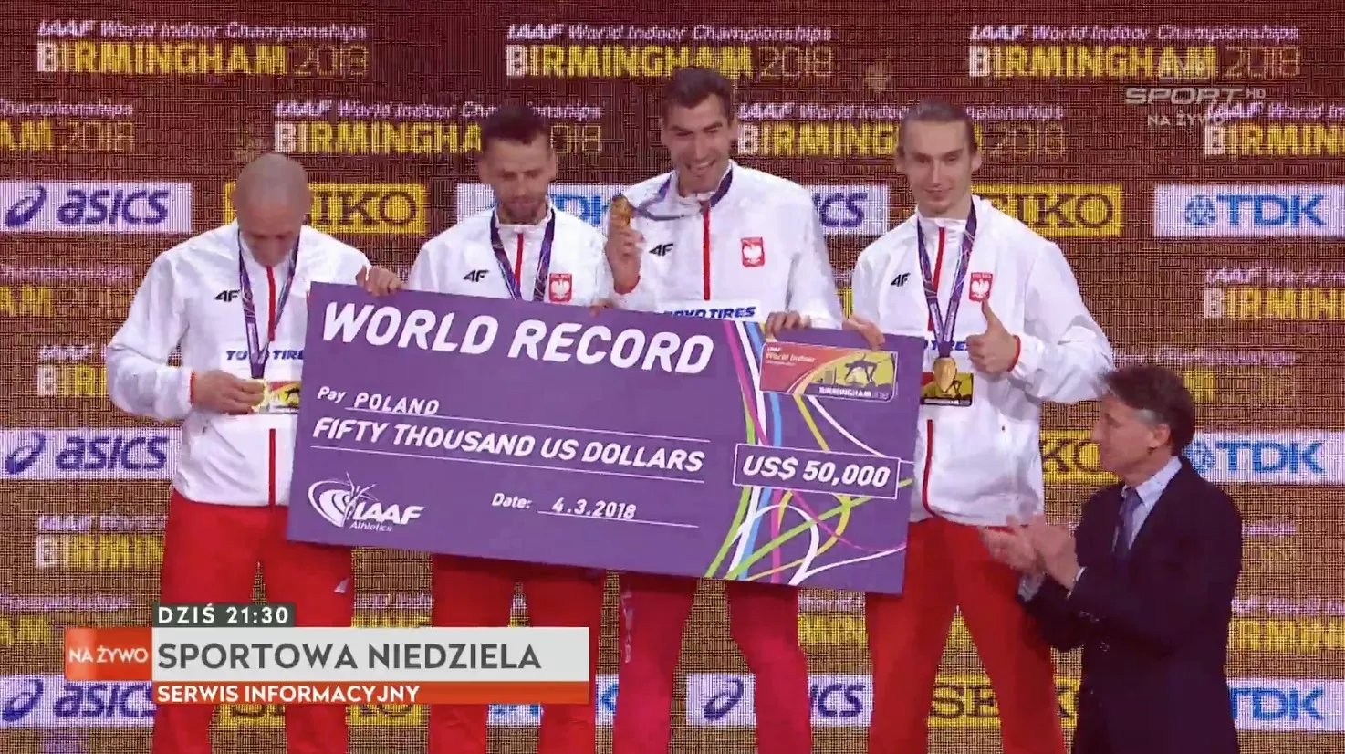 Sezon 2018 przyniósł lekkoatletom trzy duże imprezy. Podczas 17. Halowych Mistrzostw Świata w Birmingham Polacy zdobyli w sumie 5 medali - 2 złote, 2 srebrne i 1 brązowy. Wyrównali ilościowy, ale poprawili jakościowo wynik z Maebashi z 1999 r., (1-2-2). Niewyobrażalny bieg zaliczyła sztafeta 4x400m - Karol Zalewski, Rafał Omelko, Łukasz Krawczuk i Jakub Krzewina – ustanowili rekord świata w tej konkurencji – 3:01:77. Poprzedni - 3:02.13 - od 2014 r. należał do Amerykanów (HMŚ w Sopocie). Klasyfikację medalową HMŚ wygrali Amerykanie (6-10-2), przed Etiopczykami (4-1-0). Polacy dopełnili podium tej nieoficjalnej rywalizacji.