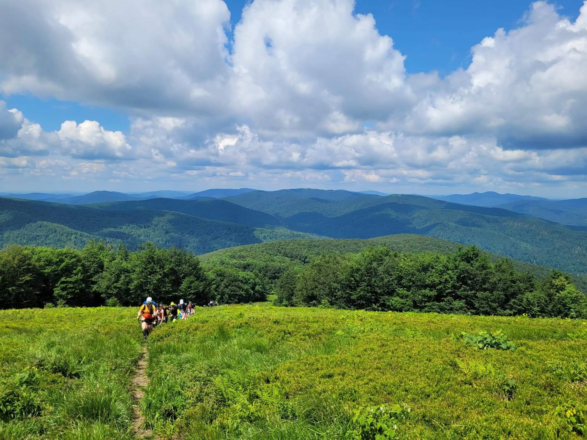 Skręciliśmy w lewo na szlak i tam zaczęło się scieśniac i robić wąsko, wtedy zrozumiałem dlaczego nie wolno aż do Cisnej używać kijków . Myślę że to dobry pomysł, gdyż nasze bezpieczeństwo jest najważniejsze. Po około 1,5 h zaczęło robić się jasno, więc latarki czołowe mogliśmy wyłączyć.