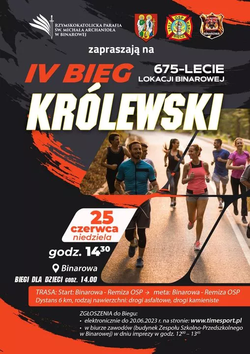 Już 25 czerwca w niedzielę w Binarowej w gminie Biecz w powiecie gorlickim odbędzie się IV Bieg Królewski z okazji 675- rocznicy lokacji wsi Binarowa. Organizatorem imprezy jest Parafia Rzymskokatolicka pw. św. Michała Archanioła w Binarowej, Urząd Miejski w Bieczu oraz jednostki OSP Gminy Biecz. Głównym celem biegu jest uczczenie 675- rocznicy lokacji wsi Binarowa, popularyzacja biegania w środowisku lokalnym oraz promocja dziedzictwa kulturowego i walorów turystyczno-krajoznawczych Binarowej.