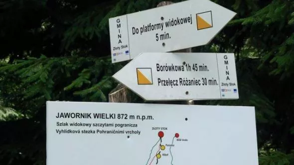 dawnym kamieniołomie, następnie prowadzi szlakiem turystycznym, który, co ważne, jest dobrze oznakowany. W ten sposób zamiast pilnowania kierunku można delektować się widokiem Gór Złotych. Najwyżej położonym punktem trasy jest Jawornik Wielki, który znajduje się w połowie trasy. Niestety w tym roku nie będzie na trasie fragmentu z kopalnią.