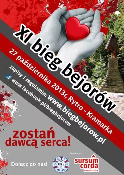 W tym roku Bieg Bejorów jest jedynym, największym i najgłośniejszym biegiem charytatywnym na Sądecczyźnie. „Dawcy Serca” – jak określa się tradycyjnie sponsorów imprezy, wpłacą 1 zł od każdego uczestnika biegu na konto chorego Bartka. Taką samą kwotę, pobraną z opłaty startowej każdego biegacza, UKS „Ryter” – organizator zawodów, przekaże na konto dziecka. Im większa będzie więc liczba zawodników, tym większe wsparcie otrzyma chory chłopak.