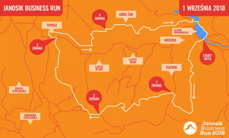 Bieg wystartuje z Niedzicy 1 września, czyli dzień przed startem Poland Business Run 2018. Każdy z zawodników przebiegnie około 10-12 km, pokonując ustalony odcinek trasy. Dystans dla całej drużyny wyniesie więc łącznie 55 km. Start i meta zlokalizowane będą w Niedzicy, a zmiany w sztafecie w wyznaczonych strefach w punktach kontrolnych – w Kacwinie, na przełęczy Łapszanka, przy OSP w Trybszu oraz w Dursztynie.