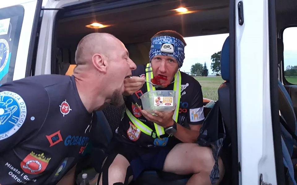 Pierwsza osoba dołączyła do mnie w Miliczu za Wrocławiem. Było ciekawie, bo o godzinie 2 w nocy, gdy planowałem już krótki odpoczynek i sen w busie, zobaczyłem biegnącego chłopaka. Powiedział, że od kilku godzin na mnie czeka. Przebiegliśmy więc kawałek razem, a potem, gdy o 5 rano wznawiałem bieg, dołączyła kolejna osoba.