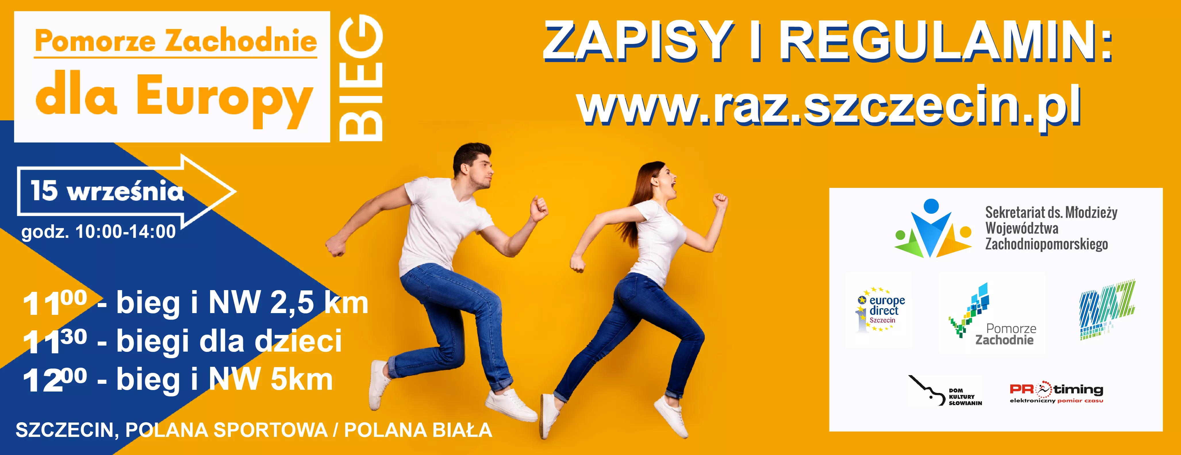 Ruchowa Akademia Zdrowia, Sekretariat ds. Młodzieży Województwa Zachodniopomorskiego i Punkt Informacji Europejskiej Europe Direct – Szczecin zapraszają na bieg „Pomorze Zachodnie dla Europy”. Będzie to okazja do podjęcia wyzwania pokonania 5-kilometrowej trasy, odwiedzenia stoisk europejskich sieci i udziału w warsztatach na temat Europejskiego Korpusu Solidarności. W programie znajdą się również atrakcje dla dzieci. Start 15 września.