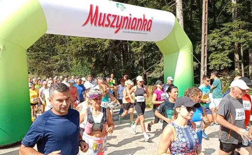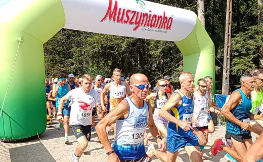 Zawodnicy wyruszyli z parkingu w Suchej Dolinie. Na starcie pojawiły się prawdziwe tłumy. Łącznie do rywalizacji zapisało się 430 osób, co oznacza, że to najliczniejszy bieg całej imprezy. Zmierzają w stronę Piwnicznej, aż do Miasteczka Biegowego na Nakle, gdzie znajduje się meta.