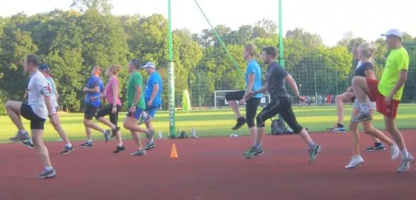 Po krótkiej zbiórce, wszyscy chętni pod okiem trenera Grzegorza Zwierzchonia z grupy 12TRI.pl przebiegli na Agrykolę. Trzeba przyznać, że miło było popatrzeć jak bieżnia wokół boiska jest wypełniona biegaczami.