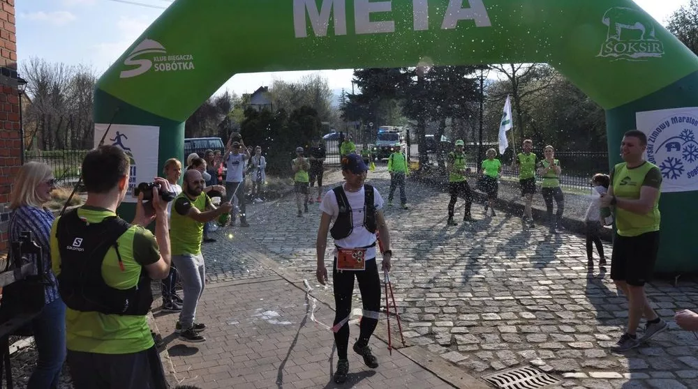 Na mecie został gorąco i gromko przywitany przez 50-osobową ekipę organizatorów i wolontariuszy. – Na końcowym odcinku trasy towarzyszyliśmy Darkowi dużą grupą w eskorcie straży pożarnej, na mecie było bardzo radośnie: muzyka, szampany. Staraliśmy się jak najbardziej docenić jego wielki wyczyn! – powiedział nam po biegu Aleksander Łężniak, prezes KB Sobótka.