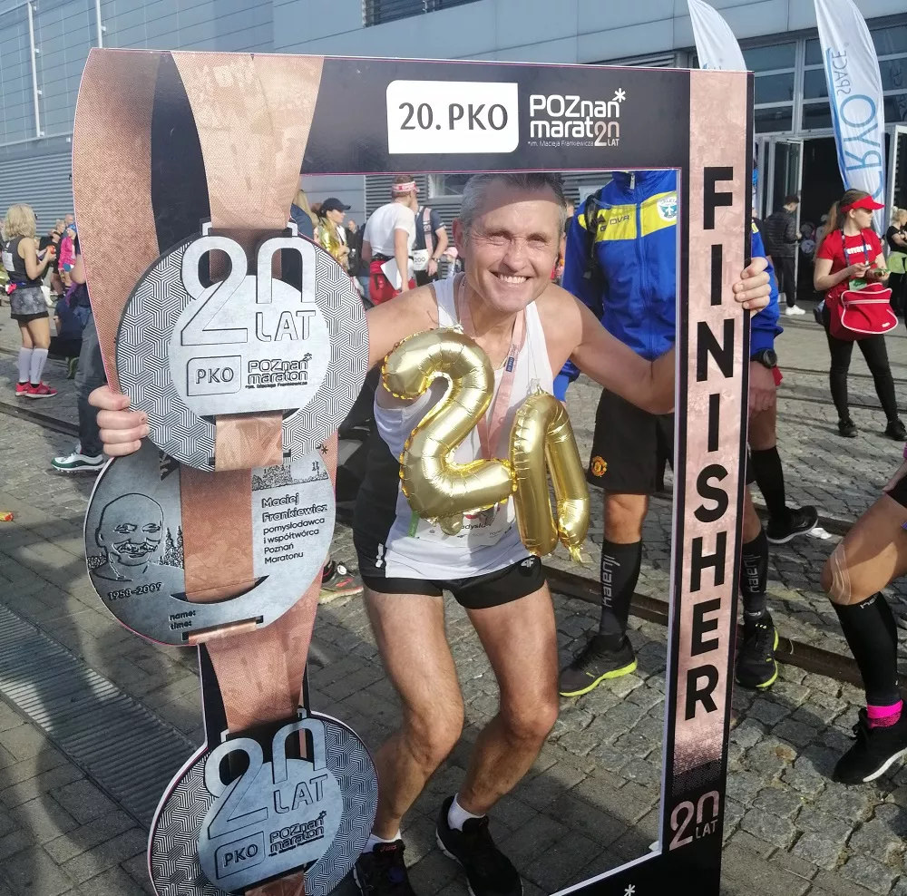 Ukończył wszystkie dotychczasowe edycje Maratonu Poznańskiego. Zaczął w 2000 roku od czasu 2:49:04. To jego najlepszy wynik w tym biegu, ale jeszcze przez sześć kolejnych lat łamał w najważniejszej imprezie stolicy Wielkopolski barierę 3 godzin. W minionym roku, w 20 starcie w Poznań Maratonie, pokonał 42,195 km w czasie 4:52:21. To był jego pierwszy maraton w życiu w czasie powyżej 4 godzin, w ostatnich latach pokonywał królewski dystans w okolicach 3:30...