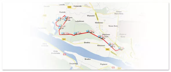 Pierwsza trasa wiedzie przez leśne tereny na północ od Płocka w okolicach Ludwikowa i Uliaszewa. Charakterystyczne, ciekawe punkty na trasie - na 10 kilometrze piękna dolina rzeki Skrwy w pobliżu ujścia do Wisły.