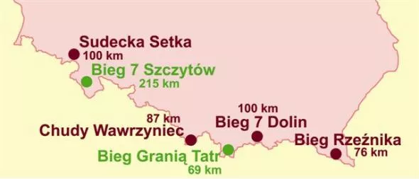 No i ostatnia zapowiedź. W dniach 18-21 lipca 2013 r. w ramach Dolnośląskiego Festiwalu Biegów Górskich zostanie rozegrany prawdziwy rekordzista pod względem dystansu i przewyższenia. Bieg 7 Szczytów prowadzić będzie przez wszystkie pasma górskie okalające Kotlinę Kłodzką, jego dystans to 215 km, a suma podejść przekroczy 10 000 m. Limit czasowy ? 60 godzin. Nie będzie limitu liczby uczestników, przynajmniej w pierwszej edycji biegu. Główni organizatorzy to Piotr Hercog i Maciej Sokołowski. Poza biegiem głównym rozegrane też zostaną biegi na krótszych dystansach.