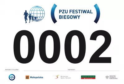 34. Numer startowy PZU Festiwalu Biegowego ma wymiary 165x240 minimetrów i wygląda tak: