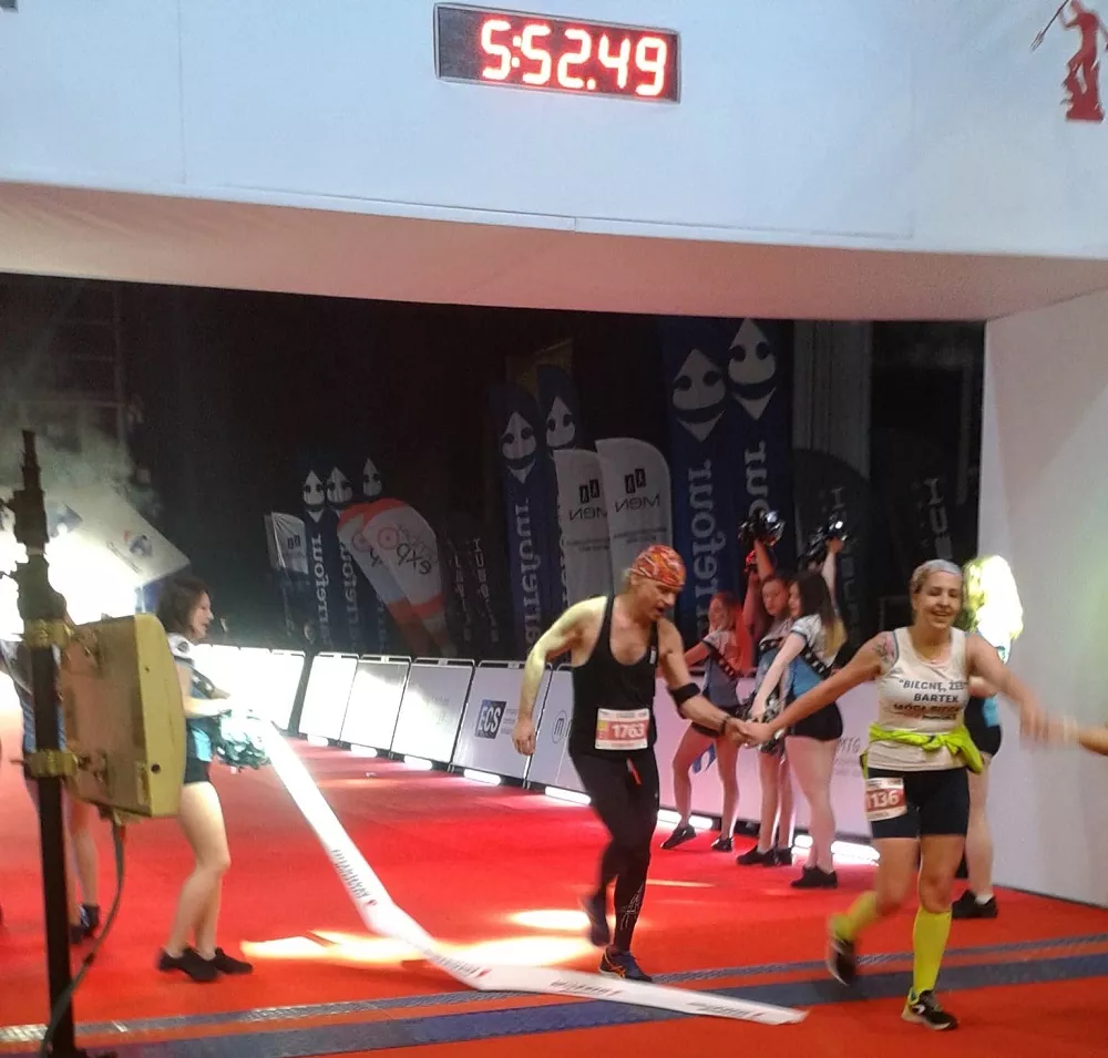 Konkurencja dla Rafała nie istniała. Za to o drugie miejsce walka była zażarta. 11 minut po zwycięzcy przybiegli Paweł Kosek z Tychów i gdynianin Marcin Rakoczy, którzy „tasowali się” przez wiele kilometrów. Raz jeden, raz drugi uzyskiwał minimalną przewagę. Kosek zaatakował na końcowych kilkuset metrach, gdy obiegali już halę Amber Expo, w środku której organizatorzy zbudowali metę. Z czasem 2:34:35 wyprzedził o 10 sekund rywala, który tuż za metą padł jak nieżywy. Był tak wyczerpany, że jeszcze kilkadziesiąt minut później, stając na podium, robił wrażenie jakby nie do końca wiedział, gdzie się znajduje.