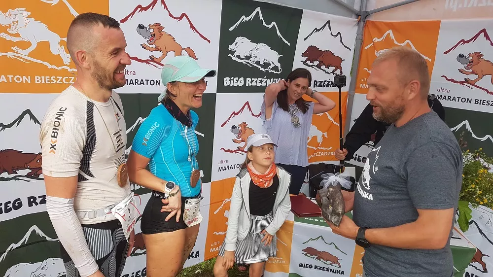 Piotr: - Coś na pewno wymyślimy, bo widzę, że jest moc i duży potencjał. Jeszcze poszalejemy razem w górach! I na pewno w Bieszczadach, i na Rzeźniku. Mamy okolicznościową statuetkę, liczyliśmy jeszcze na jakiś darmowy pakiet na przyszły rok od organizatora. Jakaś deklaracja, panie Mirku? (śmiech).