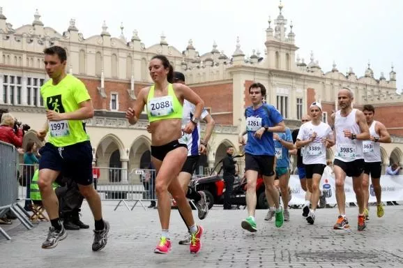 W niedzielę przybyłam na krakowskie błonia około 8.40. Wokół pełno ludzi dogrzewających się, rozmawiających i szukających depozytu. Punkt 9.10 zaczęłam spokojną rozgrzewkę, kierując się w miejsce startu. Pomimo ponad 4500 uczestników w tym (517 kobiet), nie czułam żadnego tłoku i spokojnie udało mi się zająć dobre miejsce na starcie. Godzina 9.30 - start, najpierw wózki (niepełnosprawni) potem pełnosprawni zawodnicy. Biegło się fajnie. Na trasie dużo kibiców. Może druga połowa była pod wiatr. Po 3 godzinach 17 minutach osiągnęłam metę. Jak się potem okazało, zajęłam piąte miejsce w klasyfikacji generalnej kobiet, trzecie w swojej wiekowej i zdobyłam Złoto Mistrzostw Polski AZS.