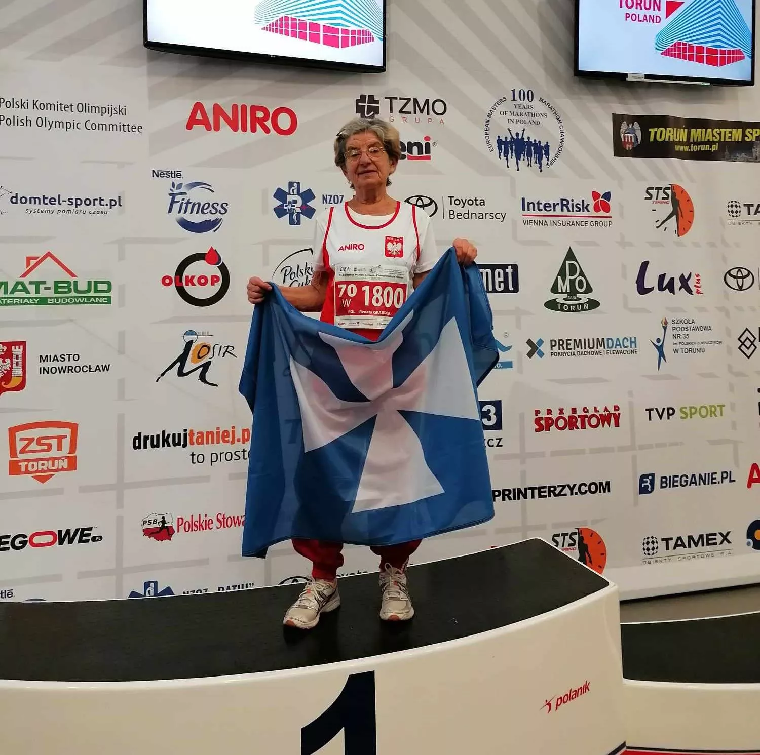 Gdzie można było ją zobaczyć ostatnio? Brała udział w Lekkoatletycznych Mistrzostwach Europy w Toruniu, gdzie w Cross Country w swojej kategorii wiekowej 70-74, zajęła czwartą lokatę, a wśród Polek - pierwszą. Europejska elita na różnych dystansach. Te biegi wśród europejskiej elity wspomina jako ogromnie przeżycie.
