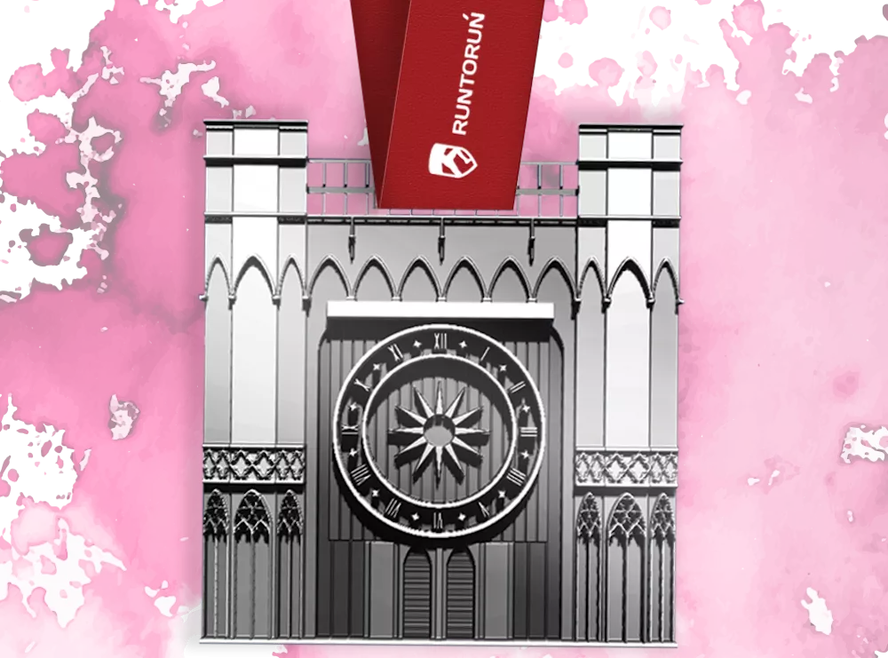 Medal, jak zwykle jest kolekcjonerski, nawiązujący do naszego miasta. Obok medali przedstawiających Krzywą Wieżę, Dom Kopernika, Ratusz Staromiejski czy Pomnik Flisaka, tym razem do kolekcji biegaczy trafi medal przedstawiający fragment wieży z zegarem, która jest częścią Ratusza Staromiejskiego w Toruniu. Tarcza zegara posiada ruchome wskazówki umożliwiające ustawienie indywidualnej godziny finiszu na mecie! Na każdym medalu będzie można wygrawerować swoje imię i nazwisko oraz osiągnięty czas.