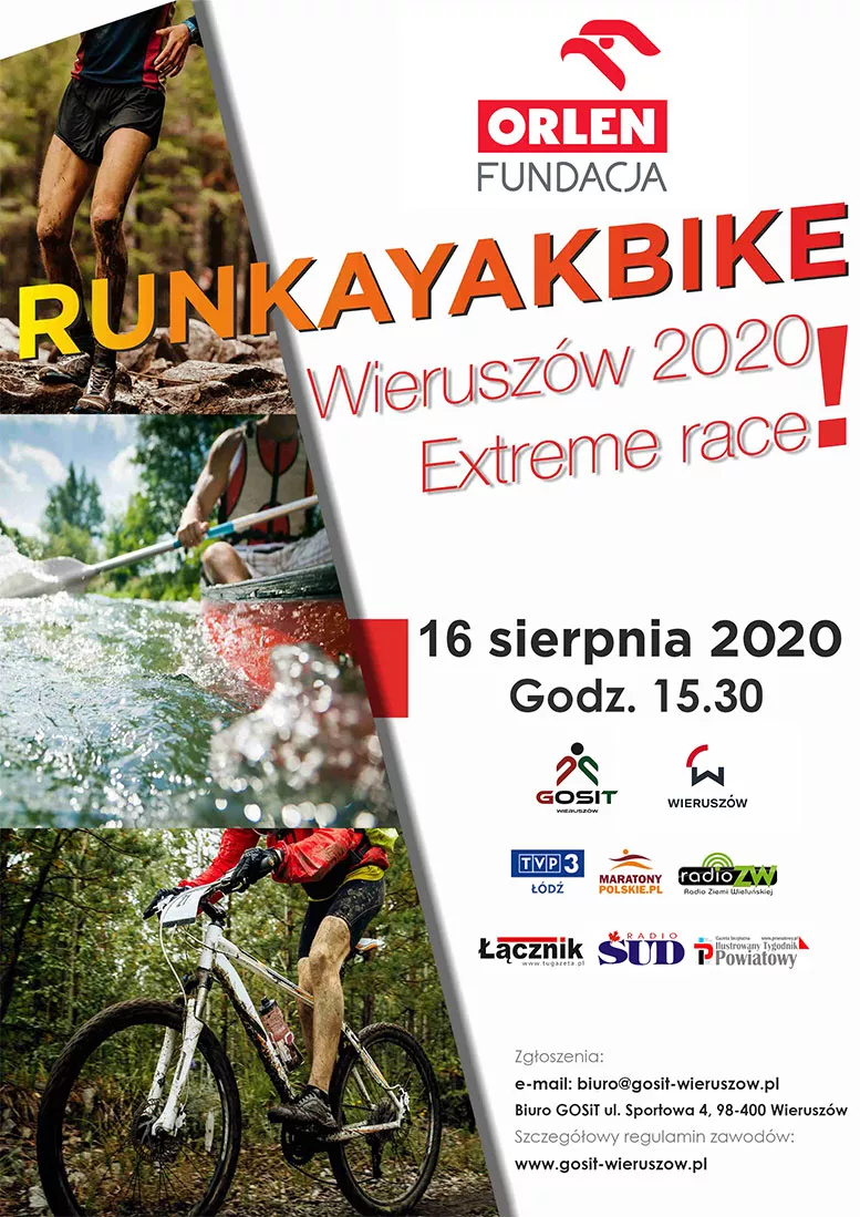 RunKayakBike to impreza łączące w sobie 3 dyscypliny sportowe - bieganie, jazdę na rowerze oraz kajakarstwo. Uczestnicy mają do pokonania łączny dystans ok. 25 km. Na drugą edycję imprezy zaprasza Gminny Ośrodek Sportu i Turystyki w Wieruszowie. Start 16 sierpnia.