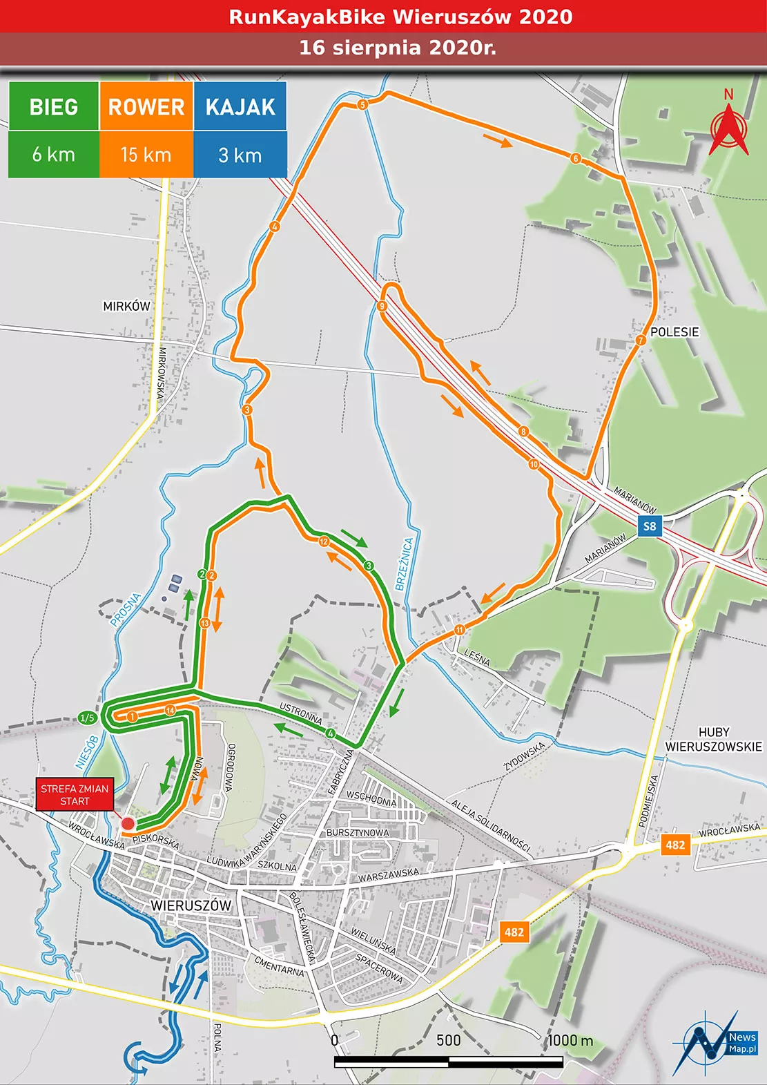 Start oraz meta zlokalizowane będą w Parku przy Stadionie Sportowym w Wieruszowie (ul. Sportowa 4).