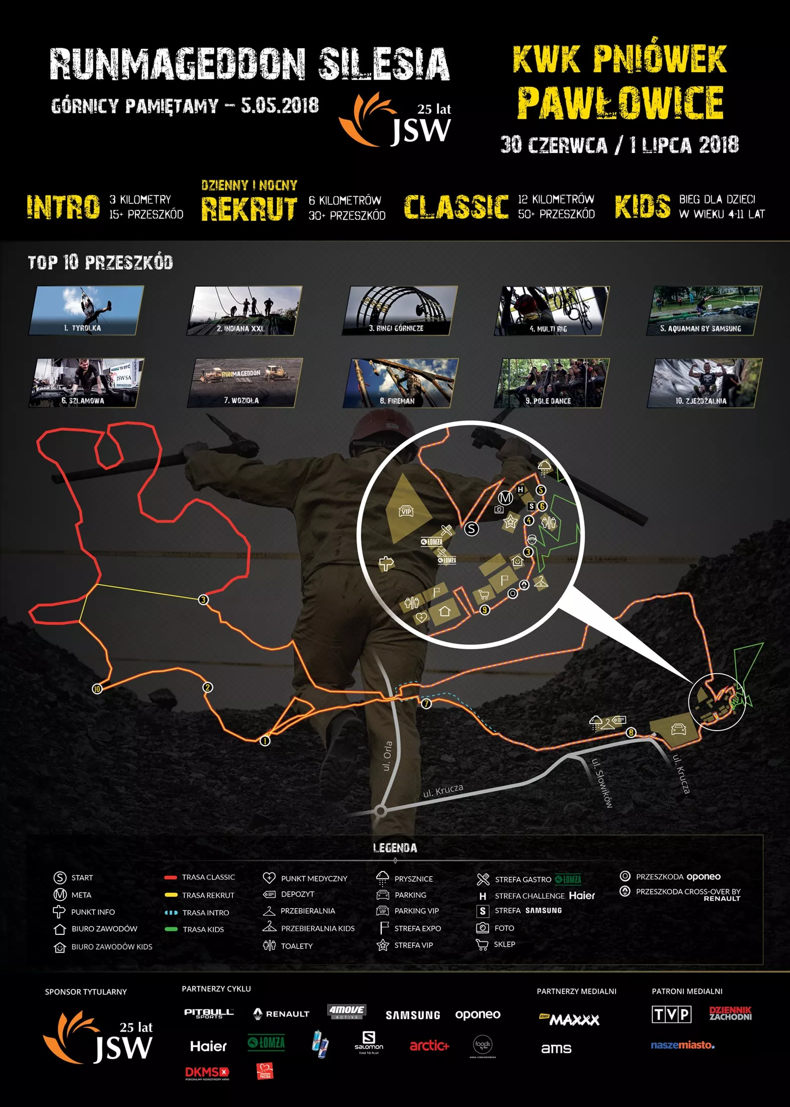 Ekstremalna przygoda dla dzieci i dorosłych w niecodziennym, górniczym klimacie, tak zapowiada się pierwszy dwudniowy i otwarty dla wszystkich Runmageddon Silesia JSW S.A. „Górnicy Pamiętamy – 5.05.2018” w aktywnej kopalni węgla kamiennego „Pniówek”.