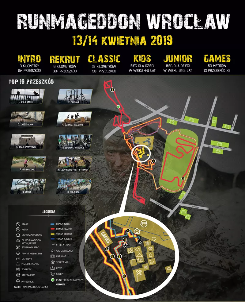 Kilkadziesiąt przeszkód, kilkanaście kilometrów trasy, tony błota i dobrej zabawy - taki będzie Runmageddon Wrocław, który zaplanowany jest na 13-14 kwietnia 2019 r. Weekendowa propozycja organizatora cyklu ekstremalnych biegów z przeszkodami najeżona będzie mnóstwem atrakcji i niecodziennych niespodzianek.