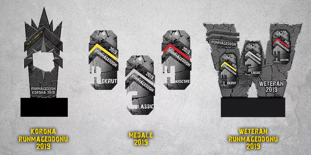 Medale zdobyć będzie mógł każdy uczestnik, który pokona przynajmniej jedną formułę: Rekrut (6 km i 30 przeszkód) Classic (12 km i 50 przeszkód) i Hardcore (21 km i 70 przeszkód). Statuetka Weterana Runmageddonu trafi do wytrwałego Runmageddończyka, który w jednym sezonie pokona 3 formuły Runmageddonu: Rekrut, Classic i Hardcore, zaś Korona Runmageddonu stanie na półce tych, którzy w roku 2019 pokonają cztery ekstremalne biegi z przeszkodami na: Zachodzie, Południu, Wschodzie i Północy kraju w dowolnej formule.