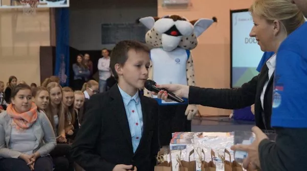 Dla sporej grupy z ponad 100 uczestników edukacyjnej imprezy w Świniarsku, nasz Festiwal nie miał tajemnic. Dzieci, szczególnie te które miały już okazję biegać w Krynicy, bez większych problemów wymieniały najważniejsze biegi Festiwalu czy dystanse, na których są one rozgrywane. Gdy się myliły, nie popadały w zakłopotanie i z szerokim uśmiechem prosiły o podpowiedź. A że odpowiadano do skutku, każde dziecko otrzymało nagrodę za poprawną odpowiedź; były wśród nich koszulki, naklejki, plany lekcji czy kubki.