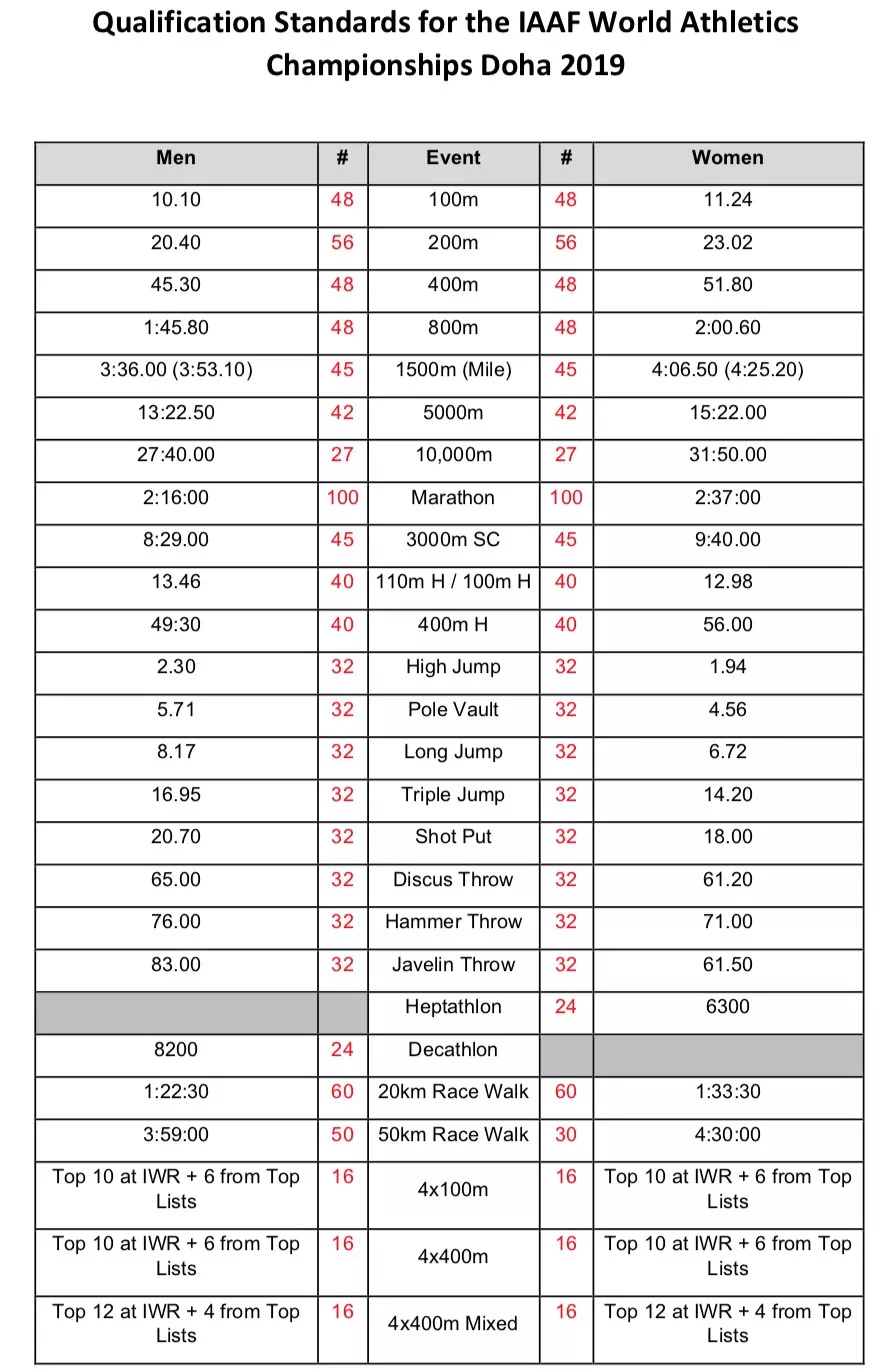 Międzynarodowe Stowarzyszenie Federacji Lekkoatletycznych zaproponowało wskaźniki kwalifikacyjne na przyszłoroczne Mistrzostwa Świata w Doha. Decydujący głos o tym kto pojedzie na imprezę mają jednak wciąż krajowe federacje.