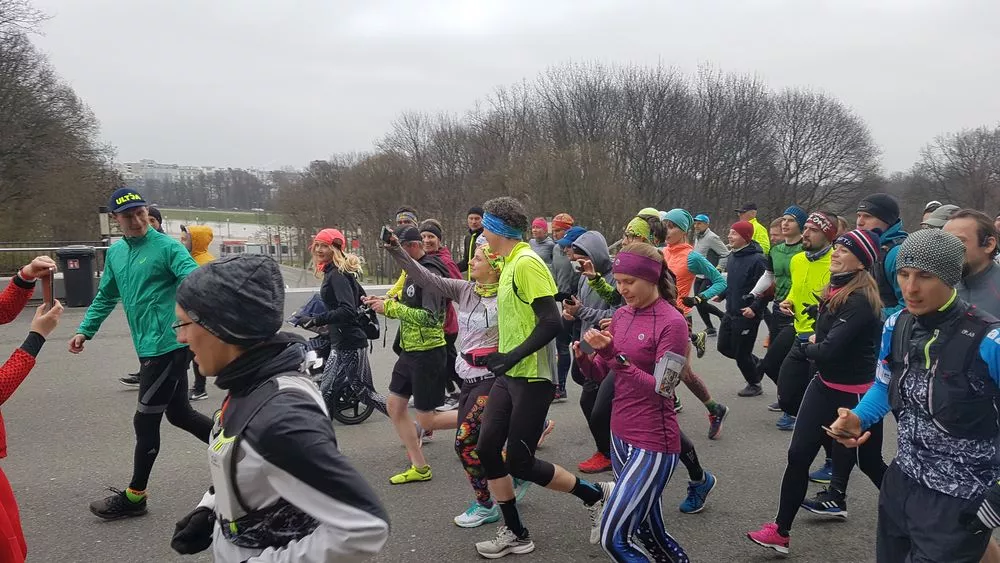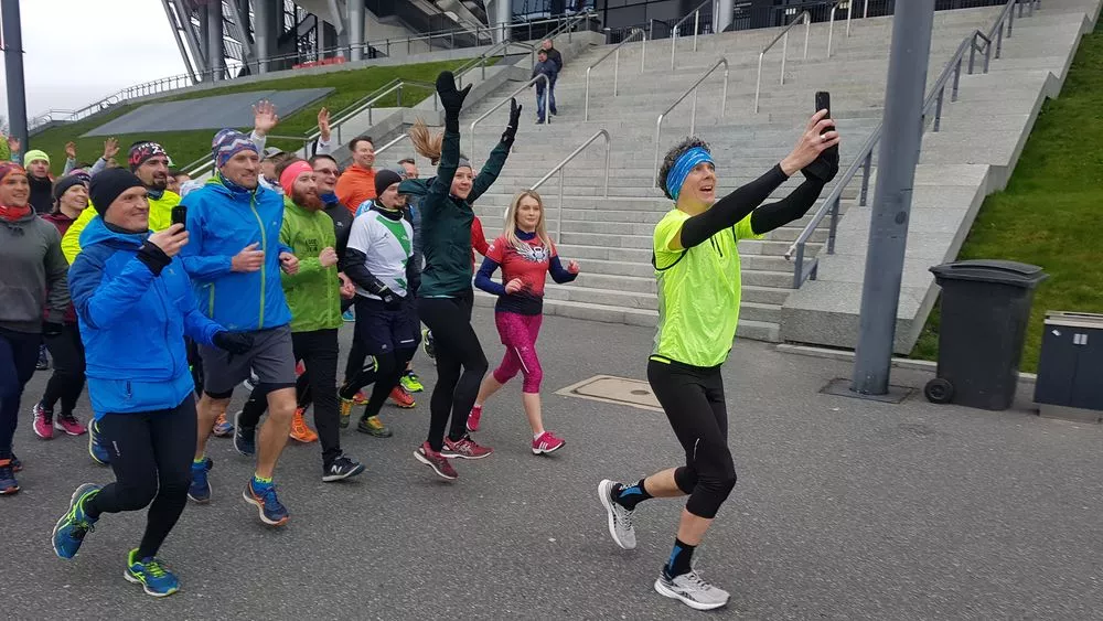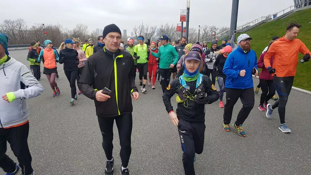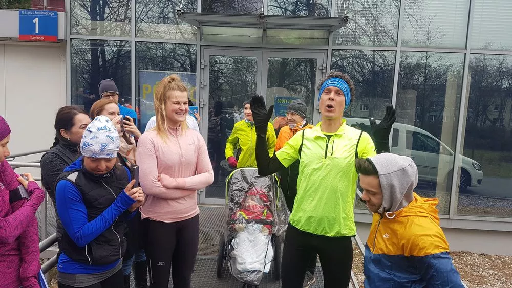 Mimo niekorzystnej pory – bo godzina 10 w dzień powszedni to dla większości pora pracy lub szkoły – około setki biegaczy przyjechało na Stadion Narodowy na trening i wspólne bieganie ze Scottem Jurkiem.
