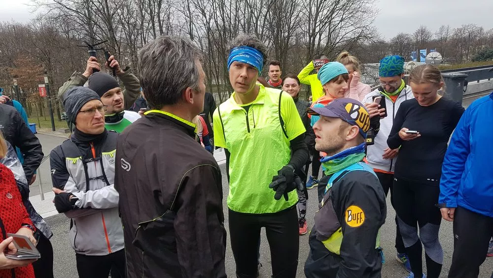 Cały czas był też do dyspozycji biegaczy na wspólnym treningu. Bieg nie był długi, ale mimo zimna i dość silnego wiatru pokonał w wianuszku fanów kilka okrążeni Stadionu Narodowego, cały czas z uśmiechem odpowiadając na pytania.