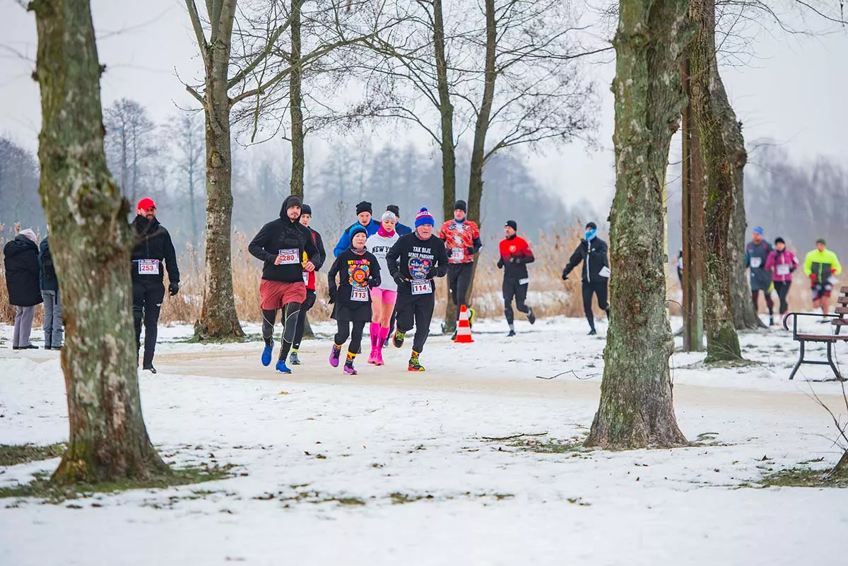 Zacznijmy od preludium: cały dzień kręcił się wokół 34. Finału Wielkiej Orkiestry Świątecznej Pomocy. O 9:00 rano wystartował 3. Pabianicki Bieg „Małych-Wielkich Serc” – idealny rozgrzewka dla najmłodszych i tych, którzy wolą krótsze dystanse. Kibice i biegacze tłumnie zgromadzili się wokół stawu Lewityn, tworząc kolorowy tłum w czerwonych serduszkach WOŚP. A potem, o 10:00, nadeszła główna gwiazda – nasz bieg! Około 300 entuzjastów, od zaprawionych maratończyków po amatorów z uśmiechem na twarzy, ruszyło na trasę liczącą mniej więcej 5 km. Cztery okrążenia wokół malowniczego stawu – brzmi prosto? Oj, nie! Ścieżki wiły się między drzewami, z lekkimi podbiegami, które testowały nie tylko nogi, ale i determinację. Warunki? Zimowe, ale nie ekstremalne – idealne na to, by poczuć ten charakterystyczny “biegowy dreszcz”.