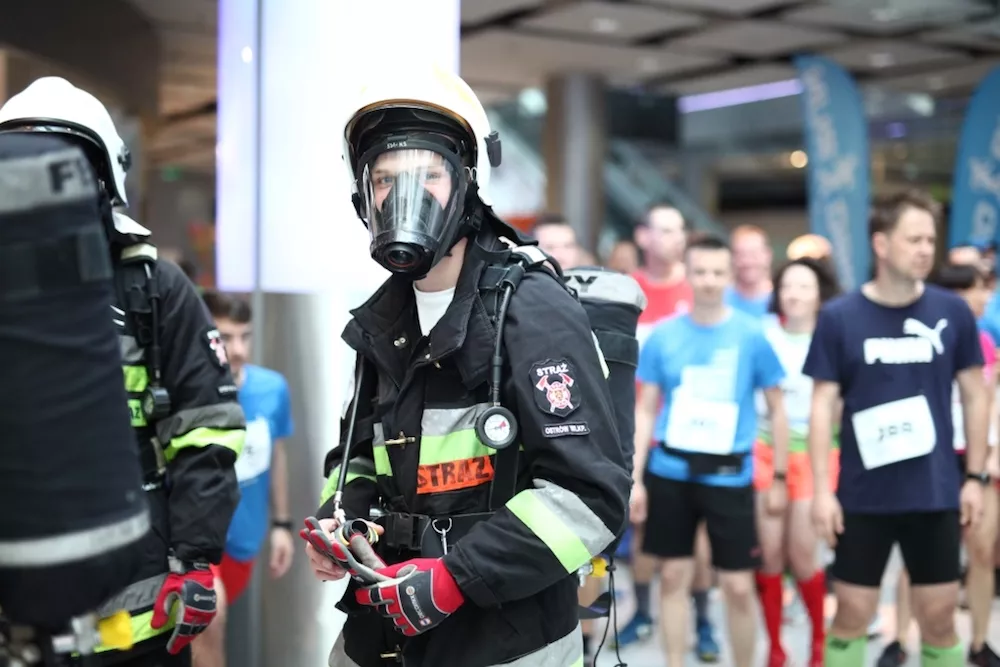 W ramach Sky Tower Run odbywały się również Mistrzostwa Polski Strażaków w biegu po schodach - pożarnicy wbiegli na 49 piętro w strojach sportowych oraz w mundurze bojowym, czyli tzw. pełnym rynsztunku. Najlepszym biegaczem okazał się tu Damian Razmus z KP PSP Zgorzelec. Ciężki strój, kask, maska gazowa oraz butla tlenowa nie przeszkodziły strażakowi w pokonaniu wymagającej trasy w 9:56.