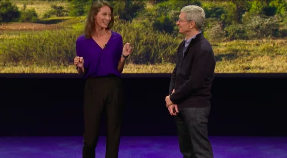 Zegarek promuje Amerykańska modelka i biegaczka - amatorka Christy Turlington (życiówka 4:20 w maratonie, na zdjęciu podczas konferencji), która pierwsza na świecie pokonała z Apple Watch półmaraton.