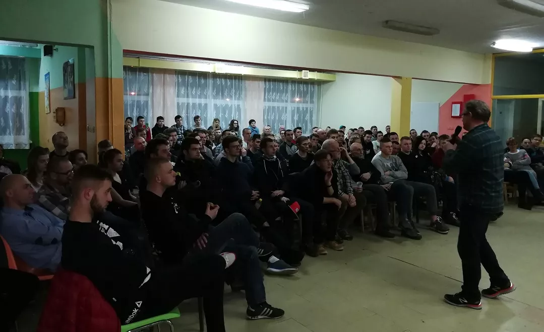 Jerzy Górski był honorowym gościem imprezy, na spotkaniu z nim w przeddzień biegu w szkolnej sali zabrakło krzeseł.