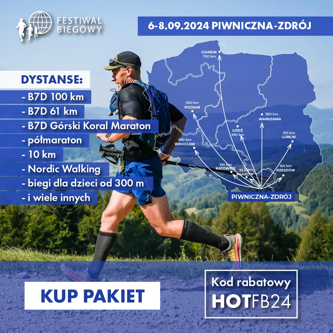 Jednocześnie przypominamy, że tylko do końca lipca pakiety startowe są aż do 10 proc. tańsze. Wpisz kod rabatowy HOTFB24 i ciesz się zniżką! Zarejestrujesz się TUTAJ. Tego nie można przegapić. Do zobaczenia już wkrótce w Piwnicznej. (tk)