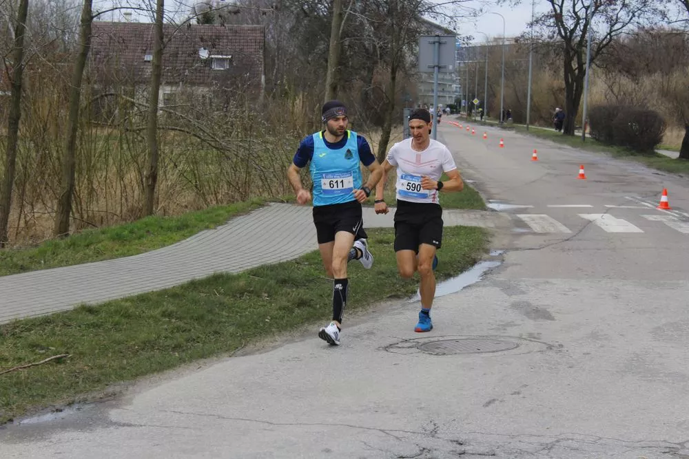Jan Huruk (nr 9) na trasie 33. Biegu Zaślubin