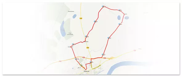 Trasa delikatnie pofałdowana, teren odkryty, bez trudności technicznych.