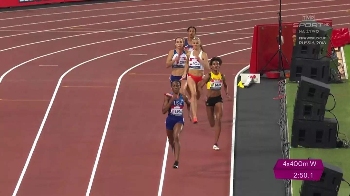 Po 8 konkurencjach Polska była na czwartym miejscu – prowadzili Francuzi, przed Amerykanami i Jamajczykami, którzy o jedno oczko wyprzedzali Biało-Czerwonych. Szansa na poprawę lokaty nadeszła szybko – na 1500 m ruszyła Sofia Ennaoui.