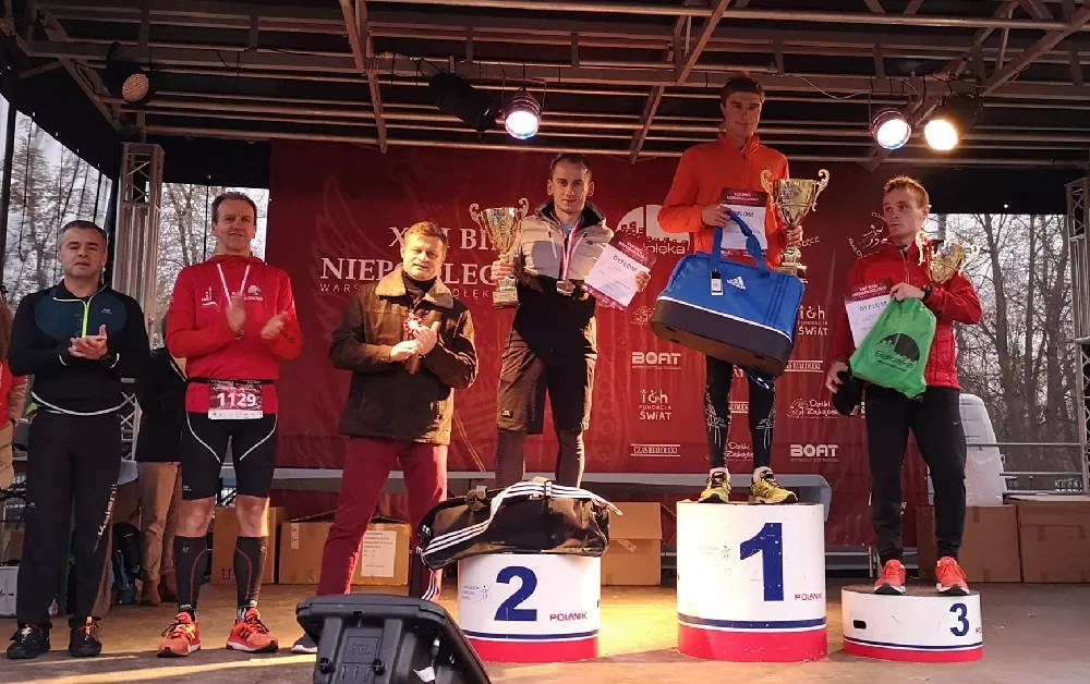 Dla dorosłych zorganizowano 2 biegi. Seniorom „50+” zaproponowano bieg na 2000 metrów, a ci, dla których było to zbyt krótko, wybrali bieg główny na dystansie 5000 metrów. Wygrał go Michał Biernacki, który na końcówce odparł ataki Kamila Szymaniaka i wyprzedził go o 6 sekund (18:24 vs. 18:30). Finiszujący na trzecim miejscu Karol Janiec brnąc przez kopny piach na ostatnich kilkudziesięciu metrach panicznie oglądał się za siebie. Niepotrzebnie. Zgubił rywali wcześniej i niezagrożony stanął na podium (18:43).